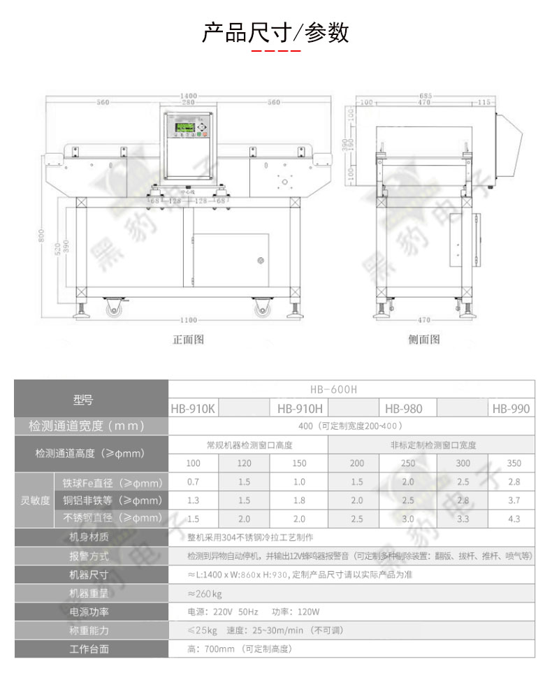 | 检测通道宽度(mm) | 400(可定制其他宽度200~2000可选) | |||||||