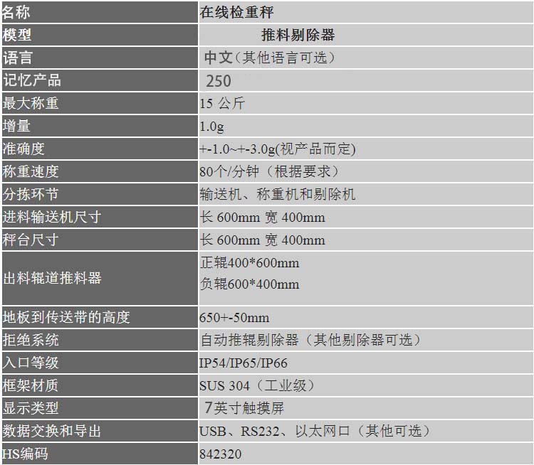 | 称台输送带尺寸 | 400mm(L)*210mm(W) | ||
